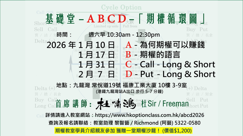 若購買或觀看時有任何疑問,請聯絡 阿藝 或電郵至 cs@hkoptionclass.com.hk。